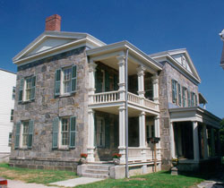 In 1838, attracted by the water power, Dr. Howe moved the company to Birmingham, and by 1842, he had perfected the solid-headed pin. His home is believed to have been built by Lucius Hubbell, who built many stone dwellings in Derby and Shelton. The later Howe Pin Company management was a leader in providing Christmas bonuses based on profit sharing to company employees.